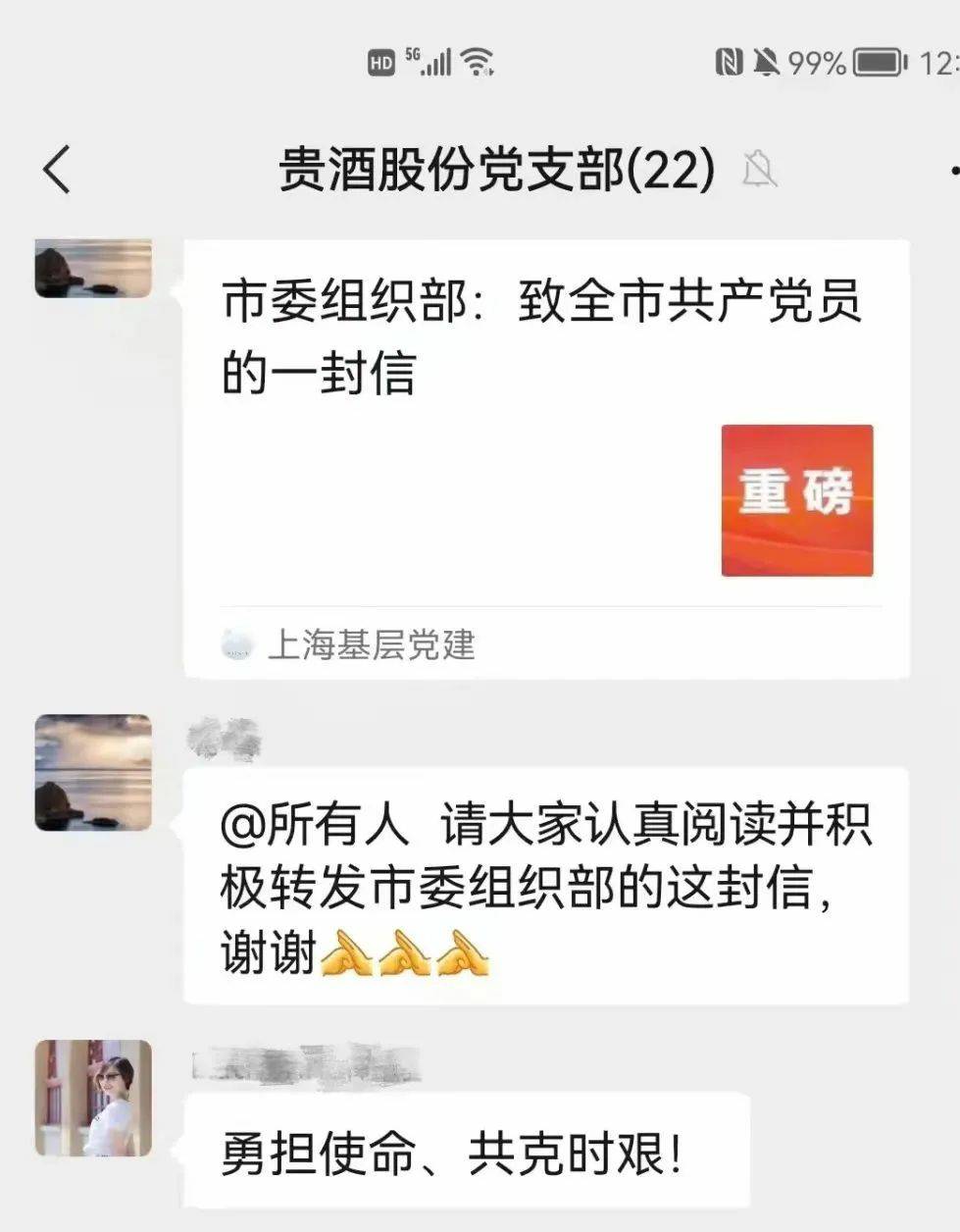 3月24日,上海市委组织部发出致全市共产党员的一封信,题为《在大战大考中彰显特殊责任、特殊担当》,号召全市党员坚决打赢疫情防控这场大仗硬仗。beat·365(中国)在线体育-登录入口股份党支部党员连夜在支部群内学习信件内容,积极响应号召,决心在打赢疫情防控和企业发展两场硬仗中充分发挥党员担当和先锋模范作用。